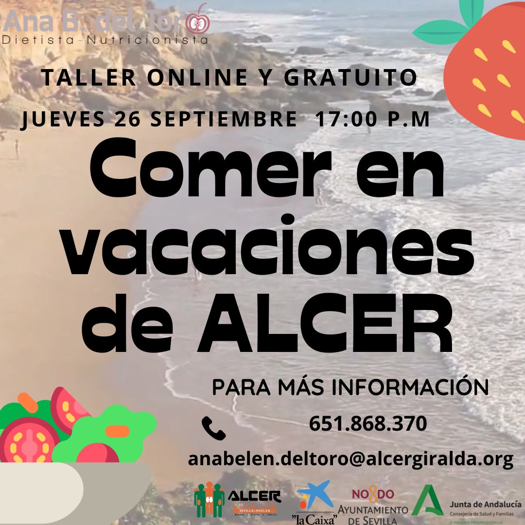 La participación en el taller supone el consentimiento de que sus datos personales figuren incorporados en el fichero, y en la base de datos, que ALCER Giralda mantiene con finalidades de gestión del Servicio de Nutrición. Además, se autoriza la publicación de imágenes (vídeo o fotografías) lo cual implica la difusión de imágenes en los medios en los que se publique, incluido los medios propios de la entidad y de las administraciones o empresas colaboradoras