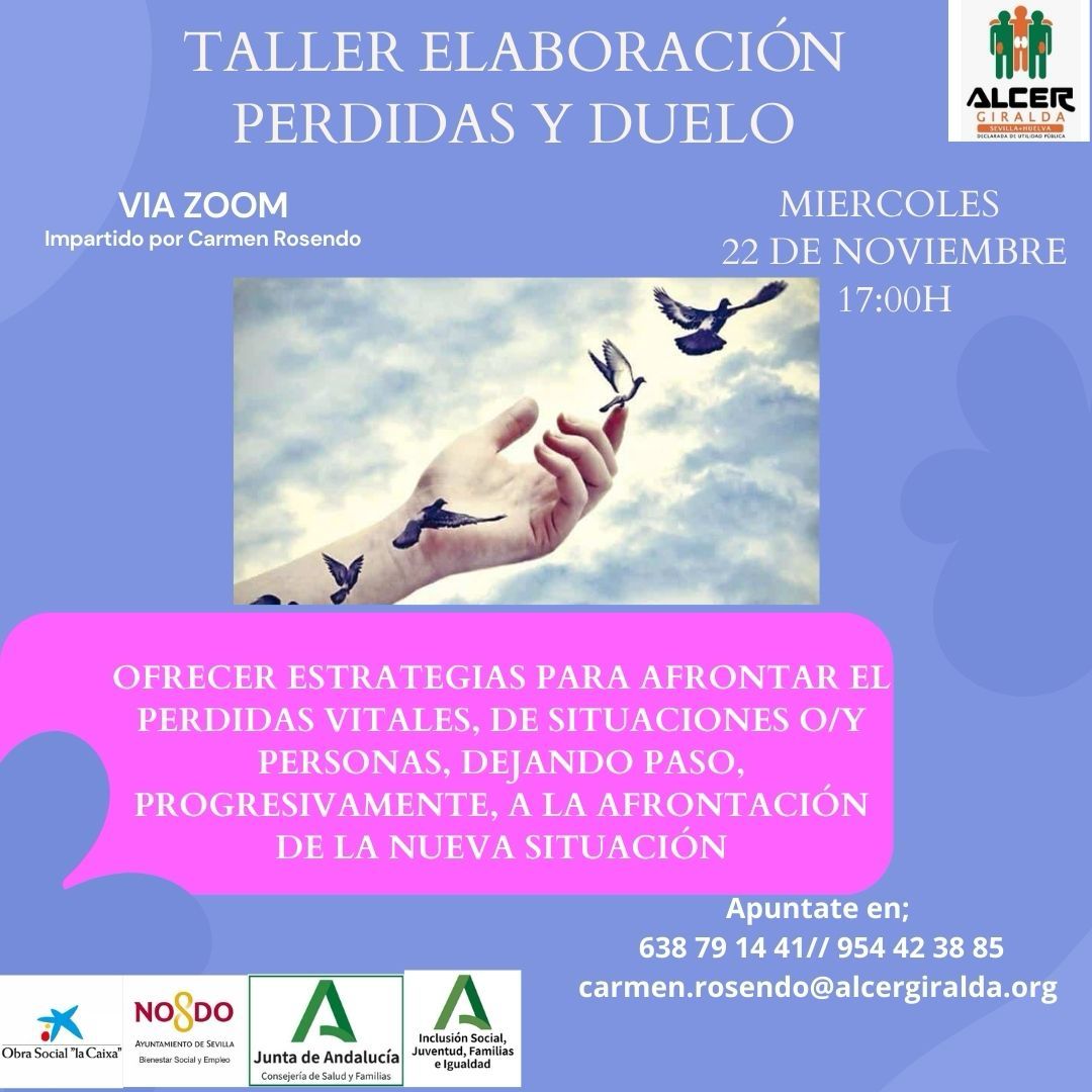 Os presentamos un taller Psicológico online y gratuito Con este taller aprenderemos a crear un espacio donde compartir sentimientos y vivencias que surgen tras la pérdida de un ser querido, junto a otras personas en tu misma situación en un ambiente de aceptación, escucha y respeto.
